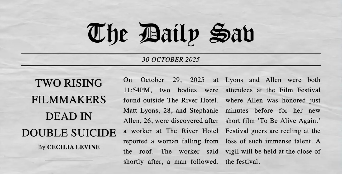 The theatre's gilded ceiling were dull as I sat in the front row in my reserved seat. The movie played and I couldn’t bring myself to care, even as it ended an applause erupted. This was supposed to be my moment, but I didn’t feel a thing. I faked a smile and walked onto the stage. The bright light flickered, but didn't falter as I thanked my team and Mom. As I peered over the crowd, I hesitated, but held up the award, his presence seeping through the crowd.